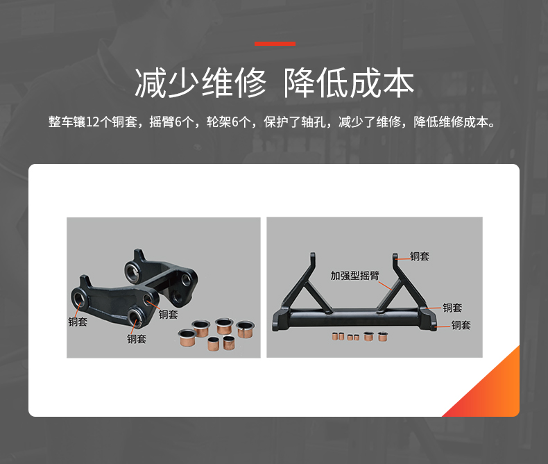 ● 所有的轉向軸處都加以潤滑,確保良好的操作性和輕松的轉向;復合套和鍍鉻軸確保了安靜平穩(wěn)的起升和行走,延長使用壽命
