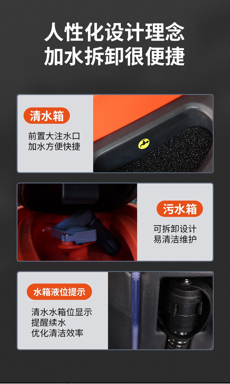 ● 污水箱大開口,可拆卸設(shè)計,易清潔維護